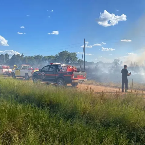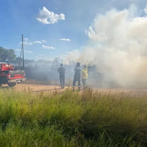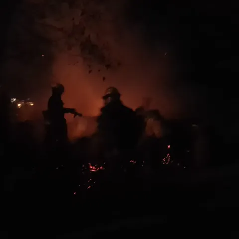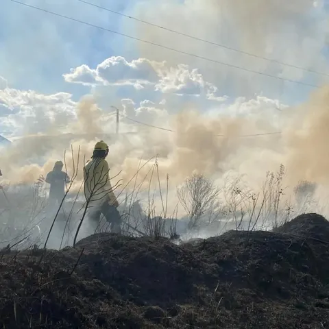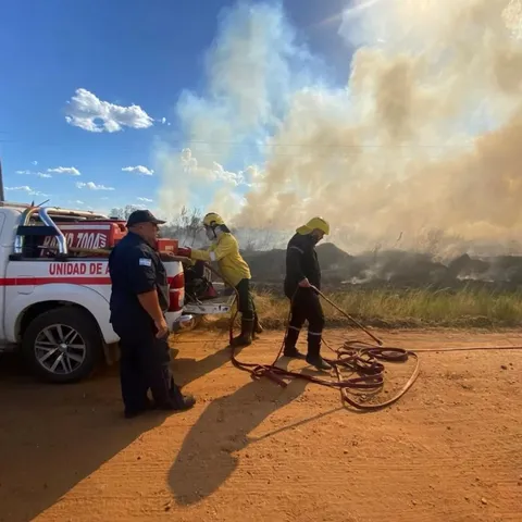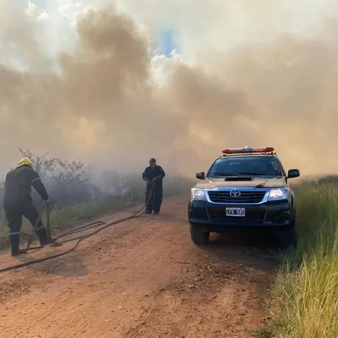 Intervención en un incendio de pastizales en la planta emisora de la radio LT12